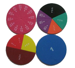Rainbow Fraction Circles. A marked set of color EVA foam circles divided into fractional parts. Includes pieces representing: 1…
