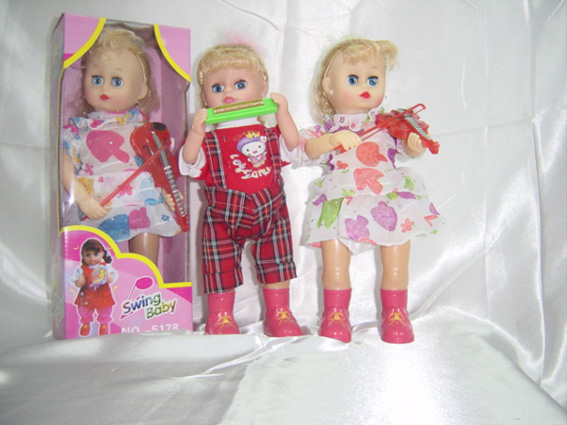 The battery which is opened the back is covered, pack into 4 " AA " battery according to battery polarity. Open the switch in the place to " ON ". The baby will follow the music an…
