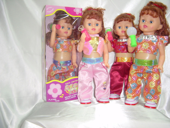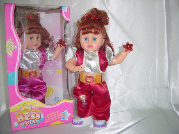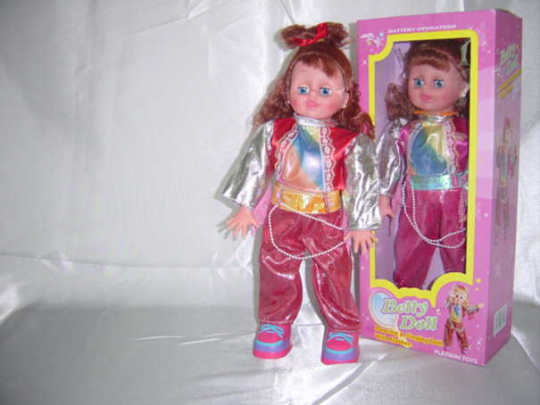 Open the back battery cover, in accordance with the battery polarity into three "AA" batteries. Put switch to open to "ON" Department. Can be issued to hear music toys, dolls hands…