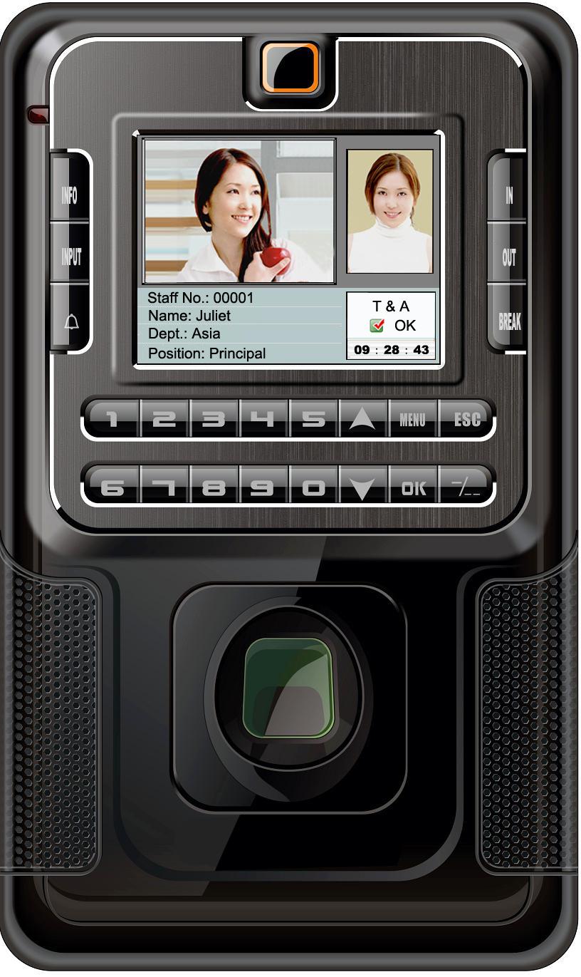 T9 - multimedia fingerprint time recorder and access control terminal: RS232/RS485, TCP/IP, U-Disk, 3.5-inch TFT Color LCD, Camera