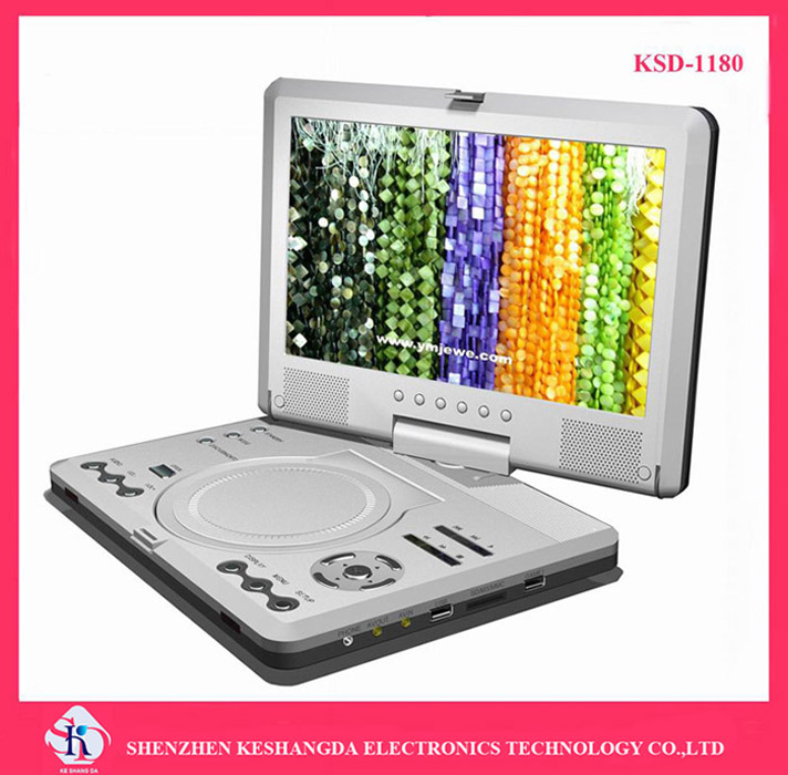 11.5-inch TFT LCD displaying CD/VCD/DVD/MP3/JPEG/DIVX/SVCD/MPEG4 etc discs.