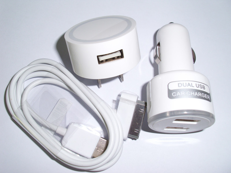 NEW design 3 in 1 kit for iphone ,iPad USB/AC/Car Charger Adapters with US Plug (White)