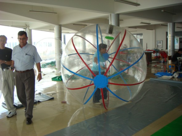 Frame: Two balls connecting with mesh cords