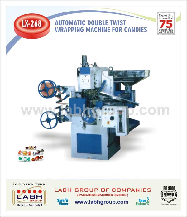 Automatic High speed double twist wrapping machine to wrap the hard boiled sweets and candies by twisting the wrapper from both the end