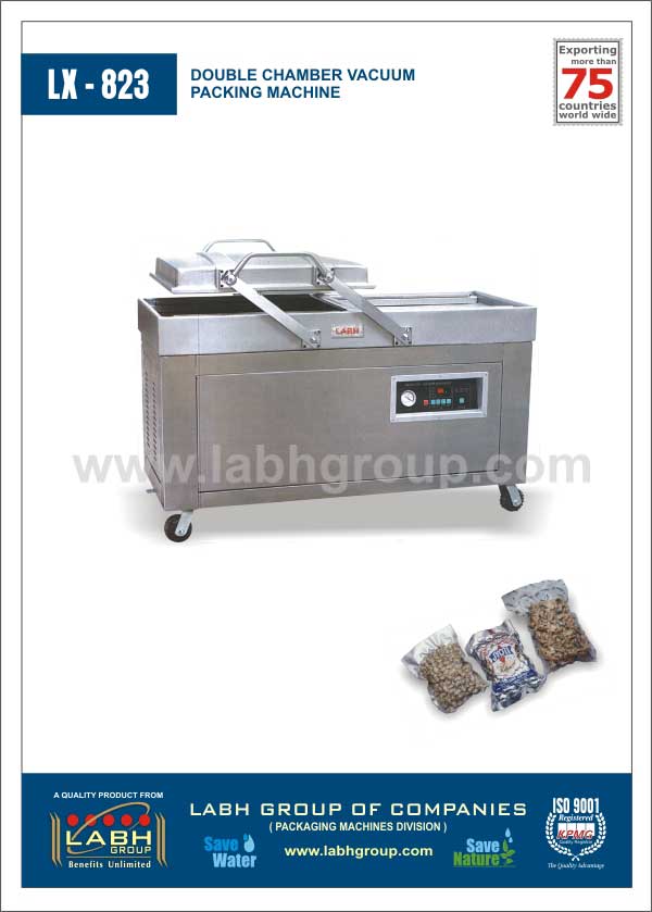 Double chamber vacuum packing machine to vacuum pack various products like Dates, Peanuts, Dry-fruits, Beans, and Pulses etc. in pouches.