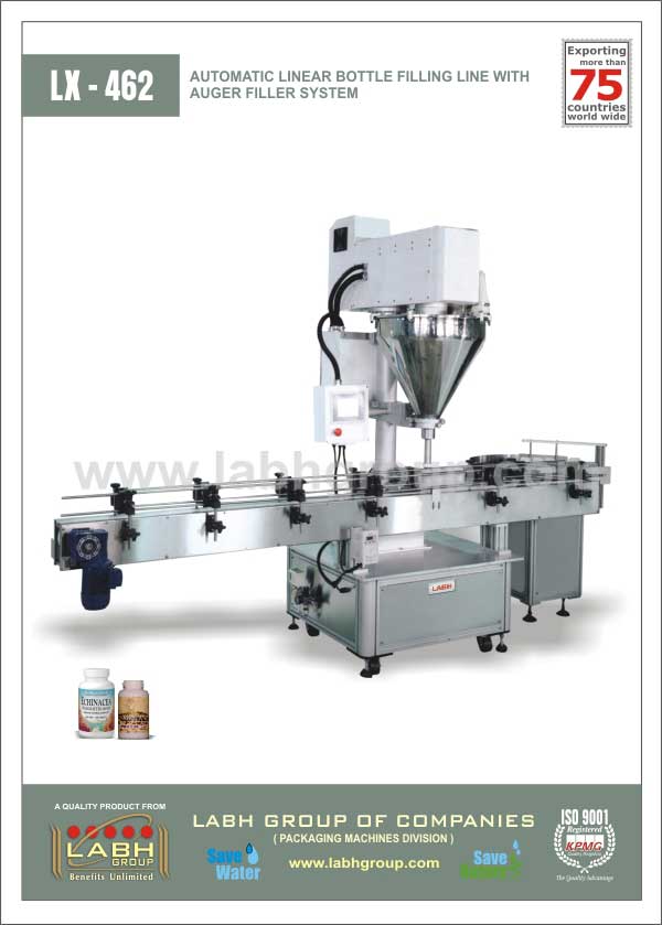 Automatic linear powder filling line with advance screw filler system to fill Powder in bottles.