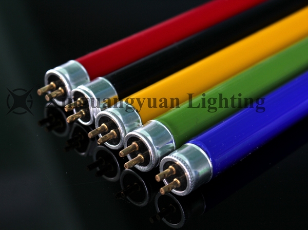 A T5 colored fluorescent lamp id ade from a special nature colored glass tube and inner coated with the colored