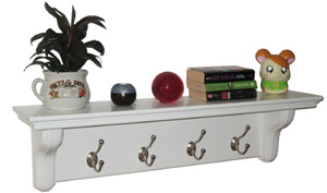 Wall shelf with hooks, made of pine or MDF, are good combination of solid pine shelf and brushed nickel-finished hooks. You can display your favorable on the shelf and hang keys and coats or other stu…