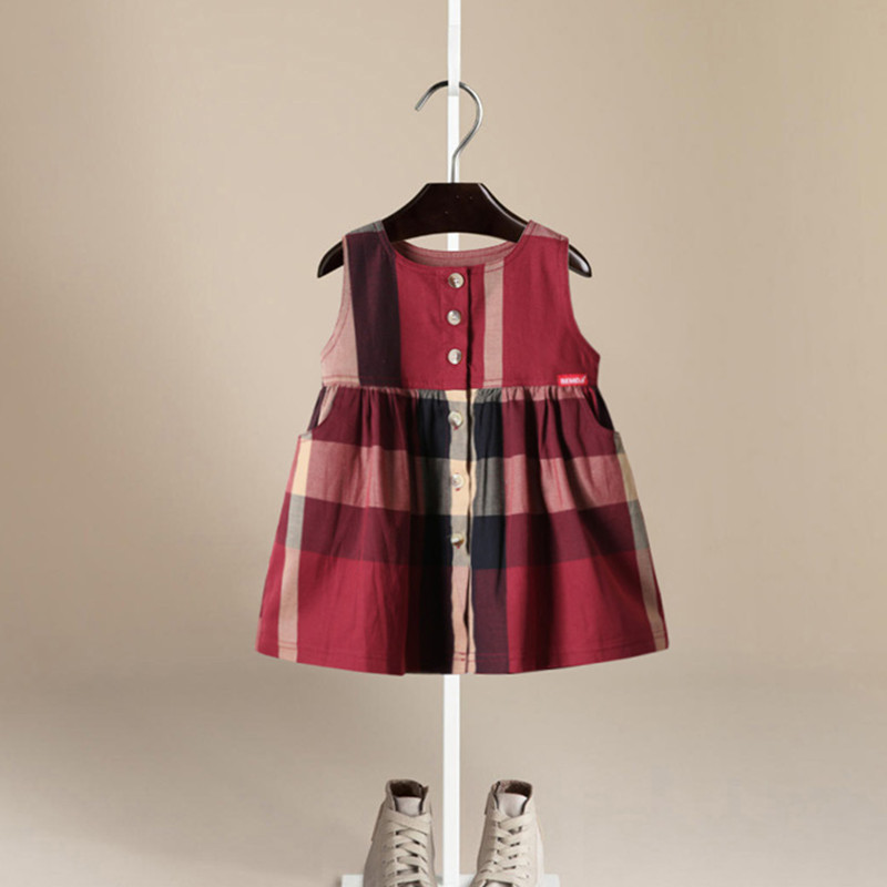 Fakifii 2017 summer girl cotton plaid dress