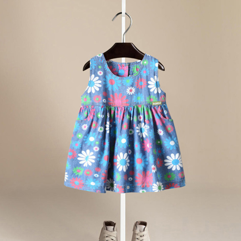 Fakifii 2017 summer girl denim print dress
