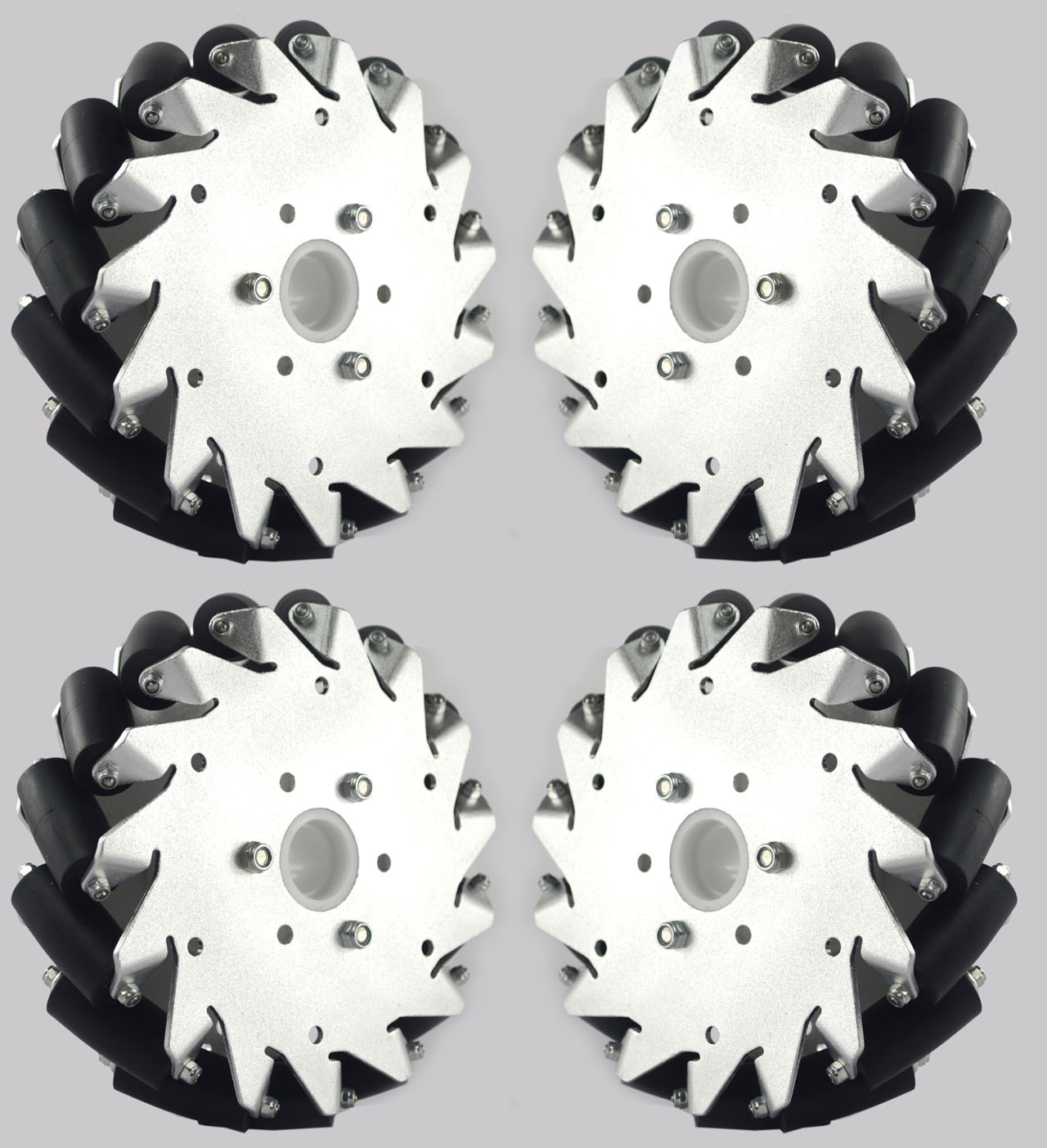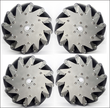 The (8 inch) 203mm stainless steel mecanum wheel is a heavy duty wheel,it includes 2 right wheels and 2 left wheels. Each wheel is comprised of 12 rubber rollers, mounted so that their axis of rotatio…