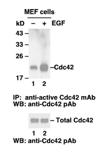 Small GTPases are a super-family of cellular signaling regulators. Cdc42 belongs to the Rho sub-family of GTPases that regulate cell motility, cell division, and gene transcription. GTP binding increa…