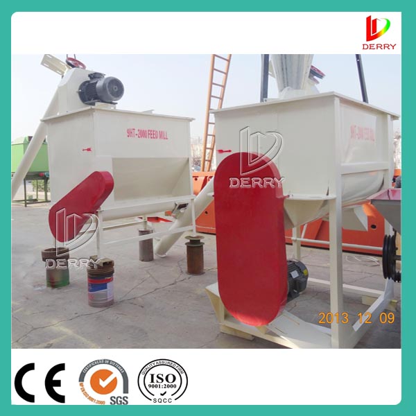 1.The animal feed grinder and mixer consists of two screw elevators, a small assisted hammer mill and a single shaft double screw/ribbon mixer.