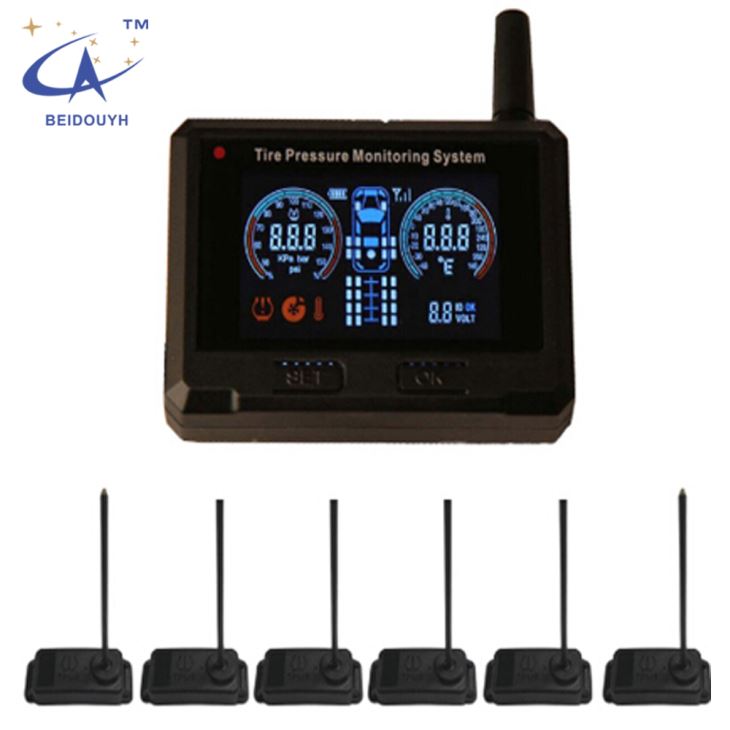 Find the BEIDOUYH-TPMS5101 for tire pressure monitoring system 2.8 color lcd display for trucks with 6pcs internal sensors built in g-sensor and repeater support air-leakage high temperature high/low …