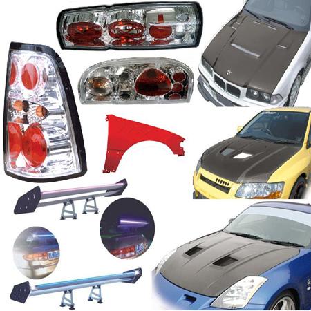 Supply various auto accessories, car tuning parts, performance parts, headlamp, fog light, headlight, fender, hood, body kits, bodystyling, spoiler, wing, hose,