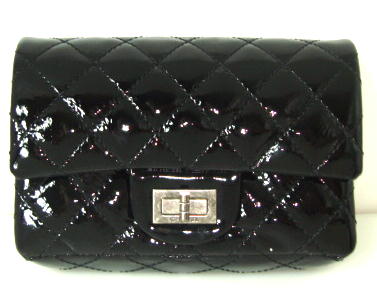 This is a 100% BRAND NEW & AUTHENTIC CHANEL BLACK PATENT LEATHER 2.55 CLUTCH BAG. It measures about 7 1/2" across; 5" High and about 2 1/2" Wide. The inside is LAMBSKIN LEATHER LINED. T…