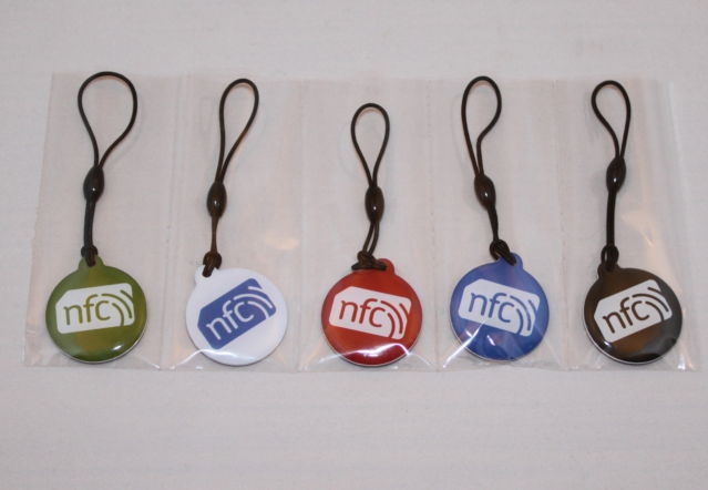This sample set of NFC NXP NTAG203 30mm Hang Tags which are manufactured by huaying with the new C logo used to represent that an item is NFC enabled on both sides. These are compatible with ALL mob…