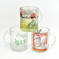 Our glass mug is heat-transfered. The mug has a special coating our company produce, which makes the color on it more bright mug, related machines and accessories to produce and promote this craft.