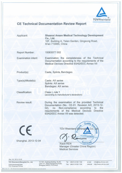 Certificates of Orthopedic Casting Tape: CE & FDA