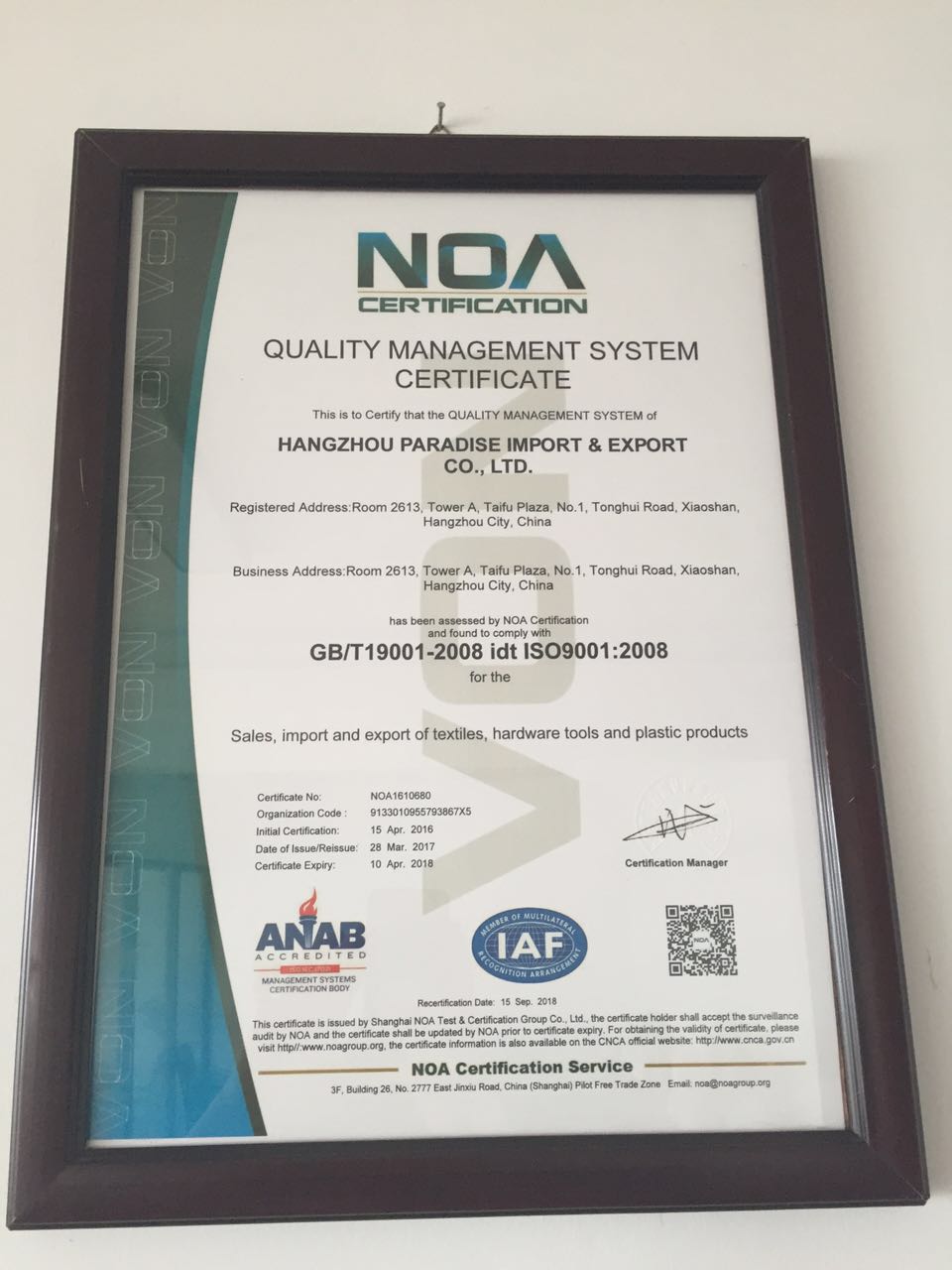 Rm. 2610.Bldg. 1, Taifu Plaza, No. 1, Tonghui Middle Road, Chengxiang Street, Xiaoshan Dist., Hangzhou, Zhejiang, China (Mainland) zhejiang xiaoshan China [CN]