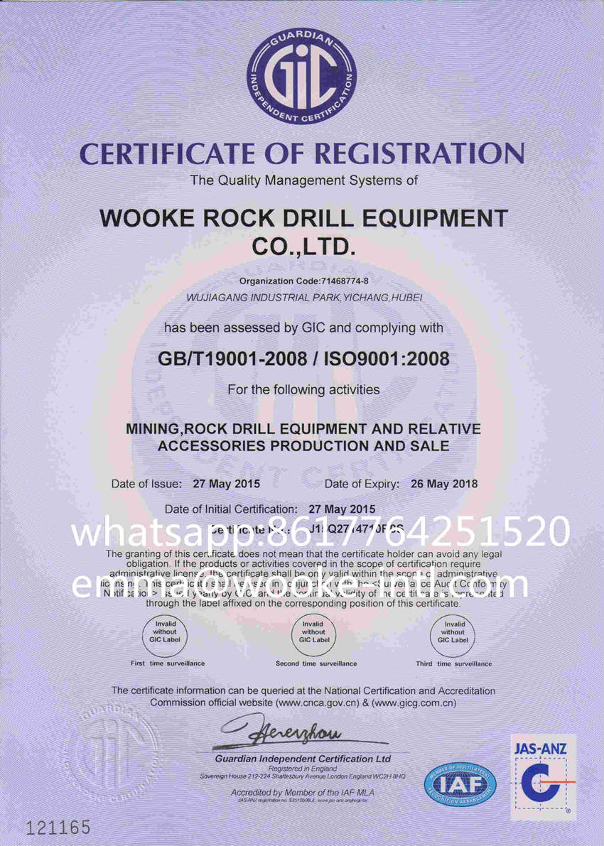 Wooke Rock Drill Equipment Co., Ltd established in1995, is the top manufacturer of High Air Pressure DTH Hammers & Bits from China, who has its self-owned Intellectual Property and strong R&D capability, also she has employees exceeds 300, factory space more than 40000m2, experience more than 20 years. She is honorably developed and OEM the best Rock Drilling Tools in China, which includes: