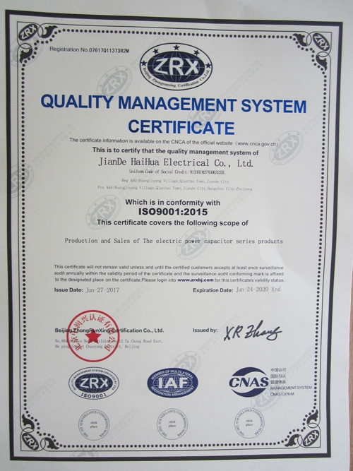 Jiande Haihua Electric Co., Ltd was established in November, 2002. It has a history of 17 years and is a professional manufacturer of electric capacitors integrating research and development, design, production, sales and service. Haihua electric pays special attention to the manufacture and development of capacitors for high power induction heating system.