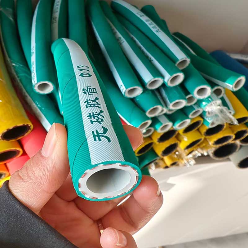 This hose is called food grade rubber hoes pipe. It is one kind of the flexible rubber hose category. The reason why it called food grade hose, for its raw material takes original natural rubber, this kind of rubber can transfer human drinking liquid directly, like milk, beer, drinking water etc. Its inner and outer tube all takes natural rubber, and mediun braid layer adopts cord. This hose does not have special pressure requirement.