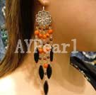 coral black agate earring