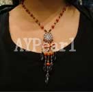 coral garnet black agate necklace