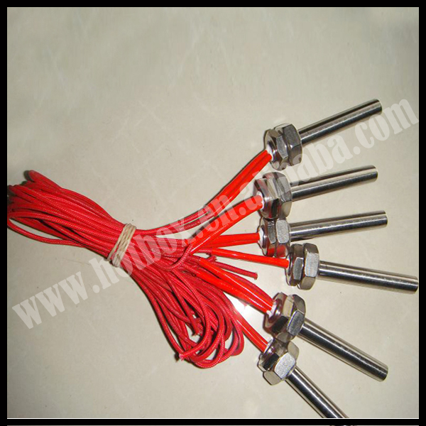 Detailed Description: Cartridge heater is cylindrical electrical heating elements. Protected with a stainless steel sheath, their watt density can reach 25 W/cm2 and their operating temperature can go up to 800°C (1472°F) Mostly cartridge heater is used for heating up solids such as injection presses heating plates or various tools, cartridge heater can also be used for heating up water of gases under certain conditions. Widely used for manufacturing plastic and rubber parts in the car industry or in the food processing industry, etc . cartridge heaters are also commonly found in the chemical, electronics, medical equipment, packing and nuclear industries Various cartridge heater technologies are available. The choice of technology will depend on technical specifications required and the application. Unless you know exactly which product you are looking for, we will recommend you the best solution for your needs. Technical Detail: 1.Wattage Tolerance: +5%, -10% 2.Resistance tolerance: +10%, -5% 3.Length tolerance: ± 2% or 3.2mm (1/8”), whichever is greater. 4.Camber tolerance: 1.7mm per meter (0.020” per foot). 5.Diameter tolerance: Diameter at each end may vary +0.05mm -0.1mm (+.002" -.004") 6.Escape of current (when cold): <=0.1mA a 242 v 7.Insulation (when cold): 5 Min Ohmios 500 Watts minimum 8.Insulation resistance (cold): ≥ 50 MΩ; 9.Maximum leakage current (cold): ≤ 0.5 mA; 10.Dielectric strength: 1500v. 1/seg 11.Tolerance of cut of connexion: +/-15 mlm 1.Material:SUS304,316L,321,Incoloy800,840,600 2.Diameter:3mm~50mm 3.Max operating temp:870ºC(1600F) 4.voltage:Voltage:12V-440V or as customer’s demand 5.Heat intensity:Not exceeding 30Wcm2 (advisable) 6.Insulation Material:High-purity Mgo 7.Reisistance wire element:Ni-Cr or FeCr 8.Lead Connection Option:Crimped or Swaged leads 9.Lead and type of connection leads:10" Fiberglass Standard(Wire options:silicone/teflon/high temperature fiberglass/SS braided). 10.Cold areas:Depends on length and diameter 5-25mm 11.Internal thermocouple:type J,K or E 12.Thermocouple Location:Disc End, Sheath, Center of Heater; Typical Applications 1.Semiconductor chamber heating 2.Semiconductor wafer lead connection 3.Semiconductor wire and die bonding 4.Freeze protection and deicing of equipment in cold climates or applications 5.Humidity Control 6.Patient Comfort heating used in medical devices 7.Mold die and platen heating 8.Seal bars used in packaging equipment 9.Test sample heating in gas chromatography